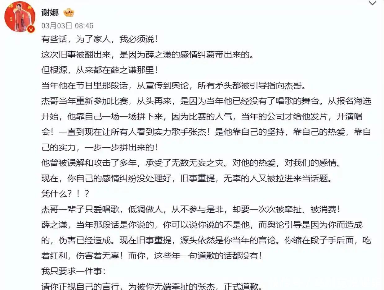 就是那句 “没找有钱女友发片”,当年全网都在猜他内涵张杰,时隔多年被翻出来,直接点燃了新的战火。本来以为就是李雨桐和薛之谦的旧怨重提,谁能想到,谢娜直接下场开撕了!凌晨发长文,直接喊话薛之谦,必须给张杰道歉!