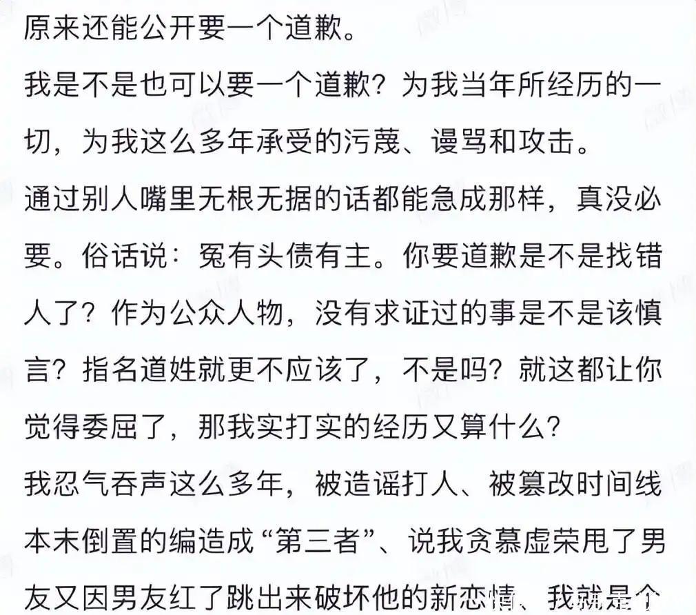 她说,你能为老公受的委屈要道歉,那我这么多年受的污蔑、谩骂、网暴,又该找谁要这个道歉?